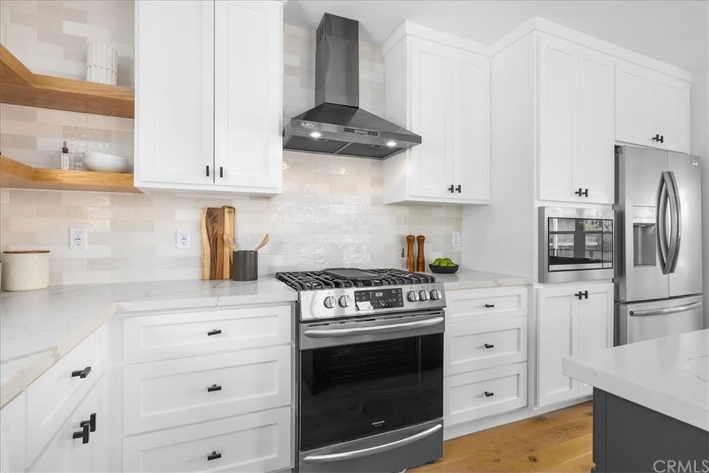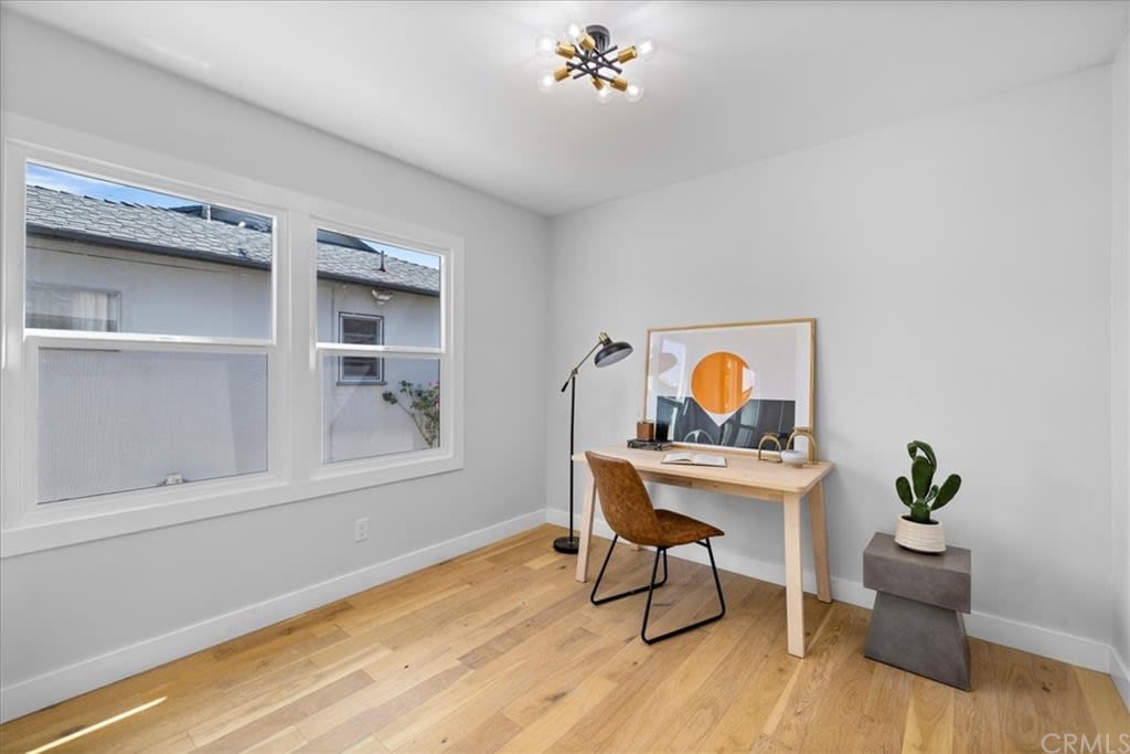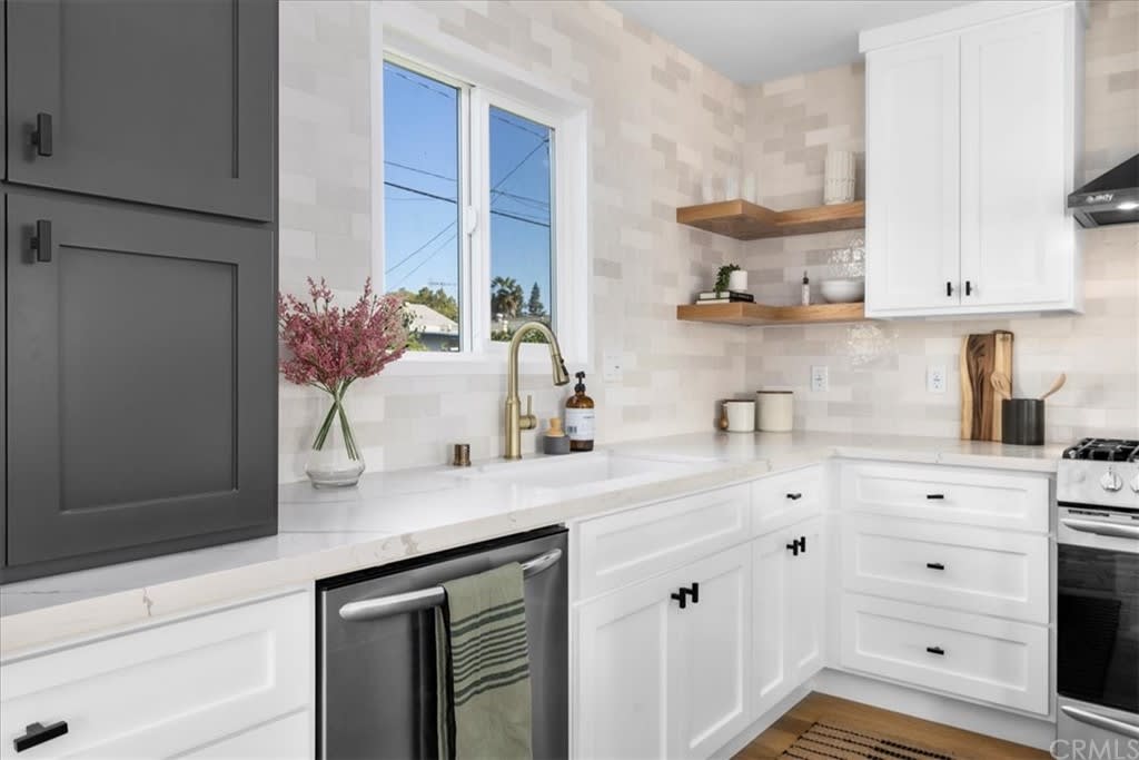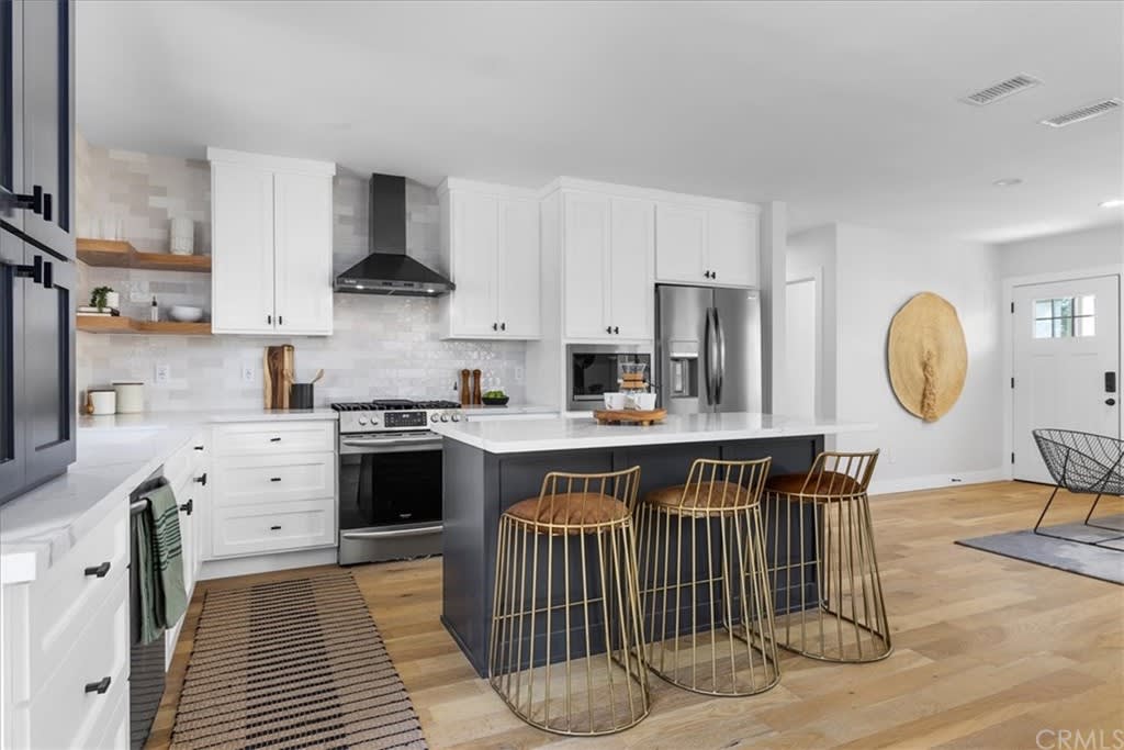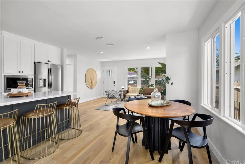 Welcome home to this stunning and beautifully remodeled designer home nestled in the desirable and highly sought after Sunkist Park. You must see for yourself the attention to detail with a minimalist feel. As you arrive on the property, you notice the front yard with drought tolerant, xeriscape landscaping. Upon entering the home, you are greeted by the dreamy, sun-splashed interior has that has been stylishly renovated and features an open floor plan with designer finishes throughout. The stunning kitchen boasts new custom cabinetry, and island, a sleek backsplash and a high end appliance package. Entertaining is a breeze with direct access from the kitchen to the picture perfect, newly landscaped, large backyard with fresh sod, paver patio and firepit area! The new engineered oak hardwood flooring runs throughout the home and all 3 bedrooms. The primary suite boasts a large walk in closet and ensuite bathroom. Both bathrooms have been updated with new finishes and on trend tile, including a 60 double vanity and custom frameless glass shower door in the primary. Located in the award winning Culver City School district, minutes from all that Culver City has to offer .parks, restaurants, shopping as well as proximity to the freeway which places all of Southern California at your fingertips.