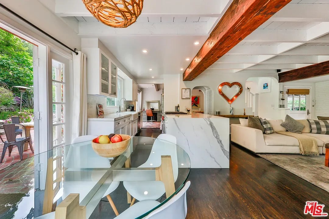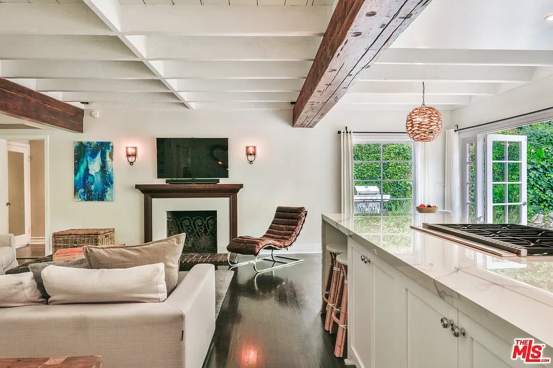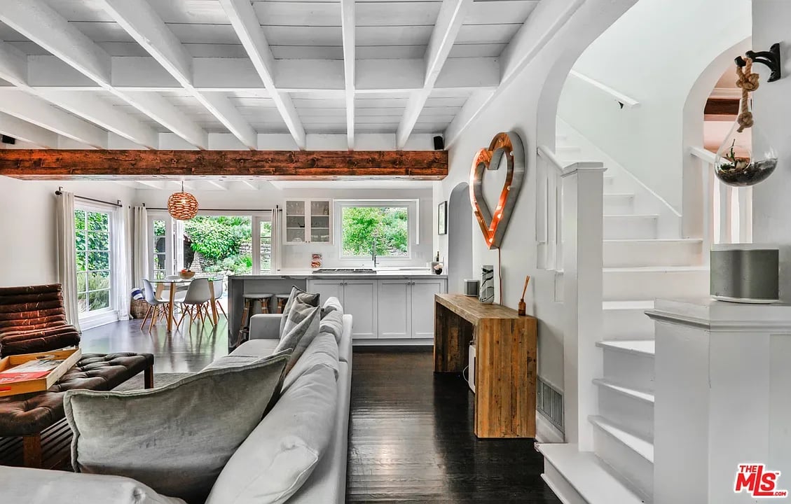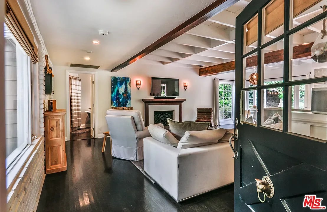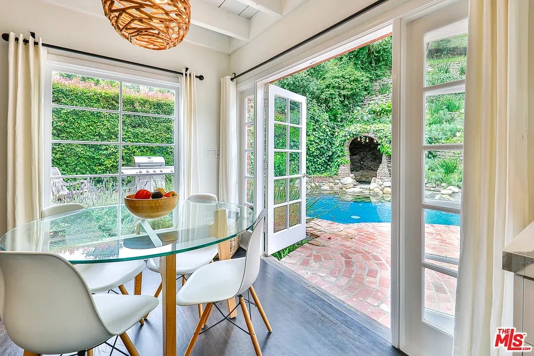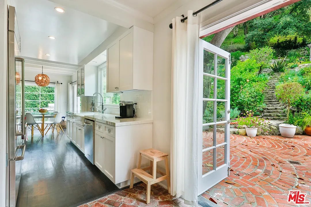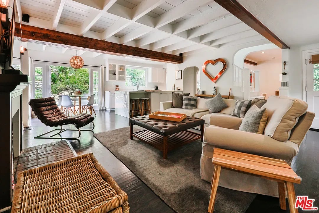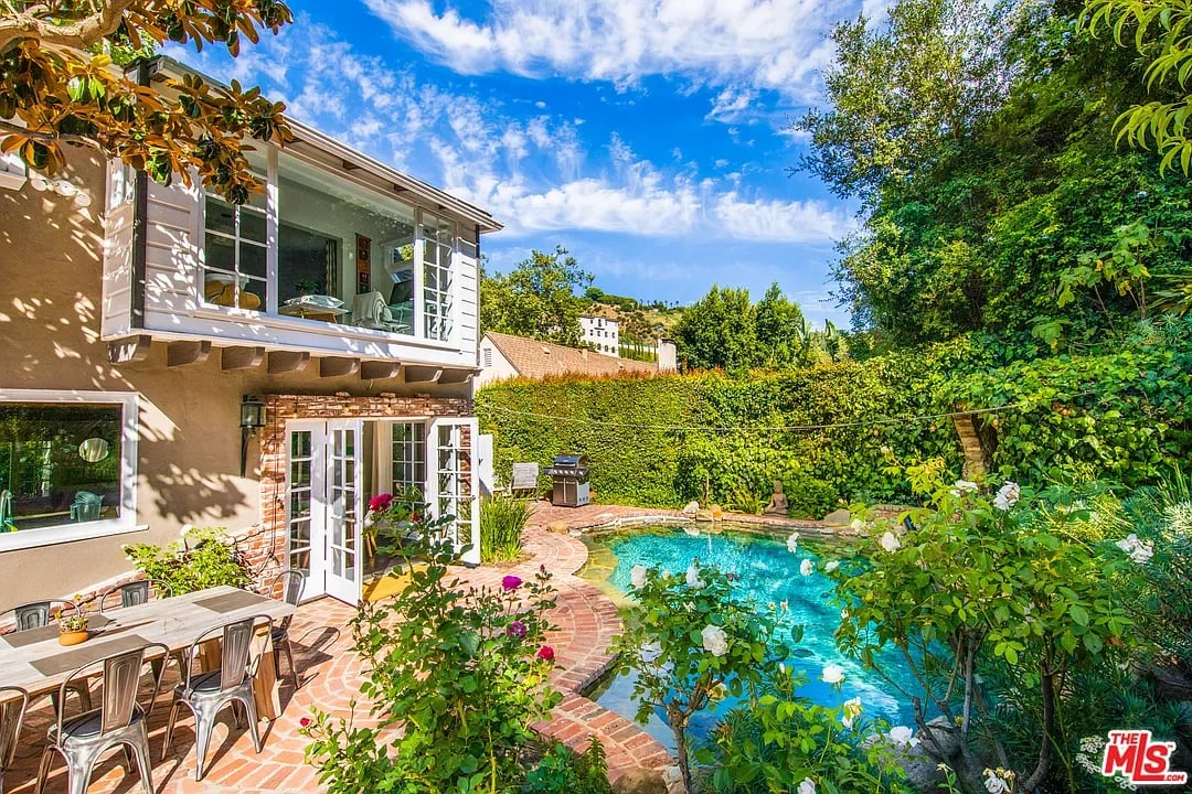 Set back from the street in the lower Canyon. This house has been beautifully updated and lovingly maintained, while still keeping all of its classic 1930's charm. Dark wood floors flow throughout, highlighting the custom paint colors and beamed ceilings. * Livingroom w/ gas-assisted wood-burning fireplace, surround-sound, and access to the garden, fully remodelled Open plan kitchen, dining-room, and downstairs guest-room. * Kitchen w/ Sub Zero/Wolf stainless steel appliances, and Imported Italian Porcelain countertops. The brick floor continues into the diningroom, which also features beamed ceilings, and direct access to the garden. * Downstairs guest suite has wall-to-wall built-in closets, plus en-suite bath with a Claw foot bathtub, separate shower and direct access to the pool. * Upstairs master bdrm w/ multi-purpose sunroom that overlooks the pool. 2nd bdrm, with generous closet and a small seating area. Shared upstairs bathroom w/ double-vanity and Custom double shower with Italian Carrara marble slab walls and giant rain shower head. * Heated Lagoon style pool features a hot tub set back in a small grotto, whose water flows into the pool. Two waterfalls cascade into the pool (these can be turned off, if desired). A large bricked patio flows through the rest of the lower level. A small but fully functional gym/exercise room with Peloton bike, multi-purpose machine and free weights affords you a full workout without leaving home. * Dual-Zone A/C, an automatic-gate entry, privacy hedges all round complete this incredibly well thought through Beverly Hills charmer.