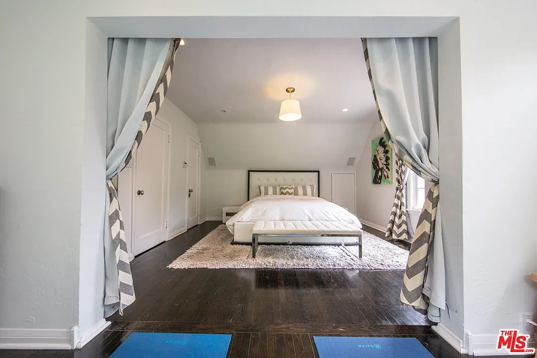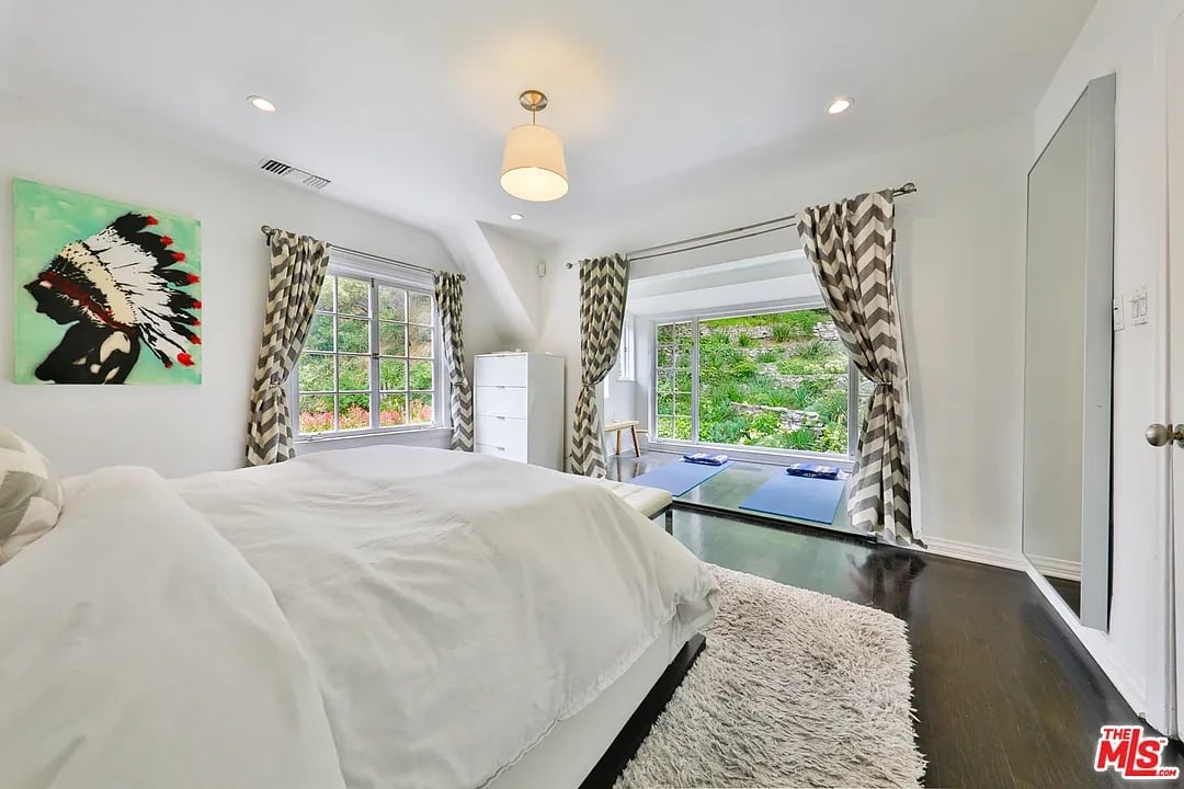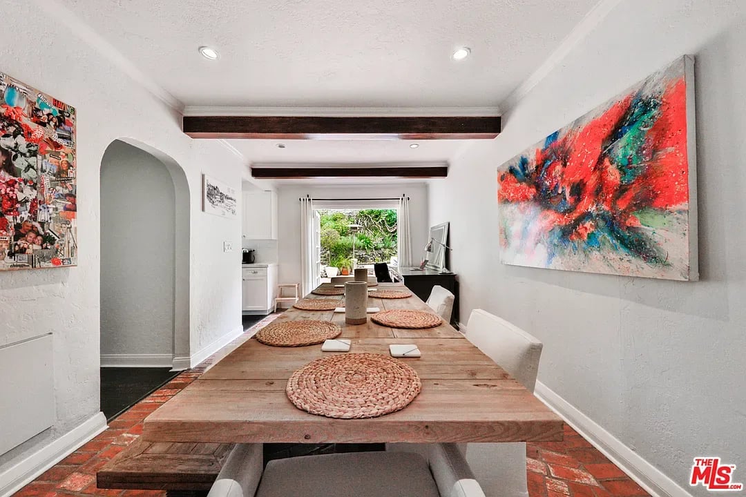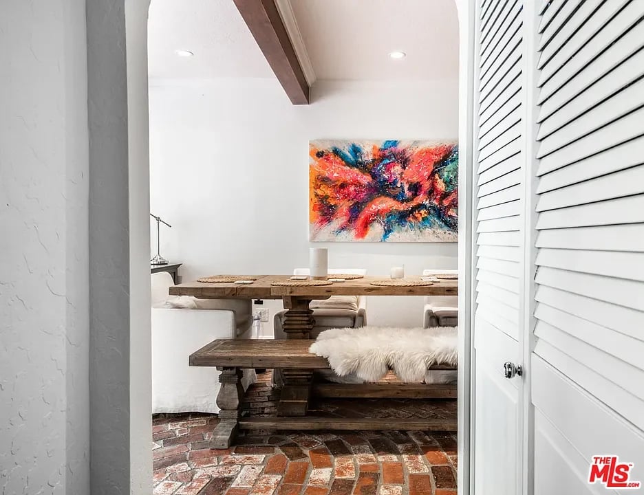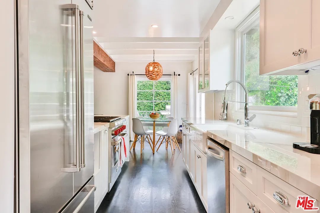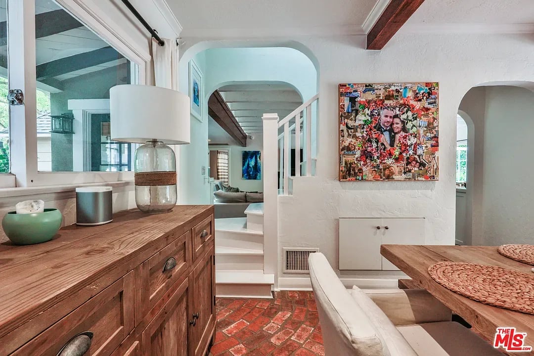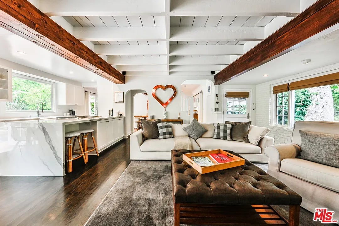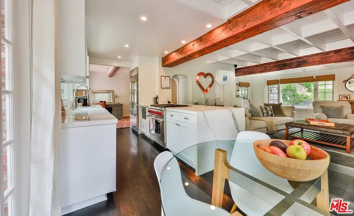 Set back from the street in the lower Canyon. This house has been beautifully updated and lovingly maintained, while still keeping all of its classic 1930's charm. Dark wood floors flow throughout, highlighting the custom paint colors and beamed ceilings. * Livingroom w/ gas-assisted wood-burning fireplace, surround-sound, and access to the garden, fully remodelled Open plan kitchen, dining-room, and downstairs guest-room. * Kitchen w/ Sub Zero/Wolf stainless steel appliances, and Imported Italian Porcelain countertops. The brick floor continues into the diningroom, which also features beamed ceilings, and direct access to the garden. * Downstairs guest suite has wall-to-wall built-in closets, plus en-suite bath with a Claw foot bathtub, separate shower and direct access to the pool. * Upstairs master bdrm w/ multi-purpose sunroom that overlooks the pool. 2nd bdrm, with generous closet and a small seating area. Shared upstairs bathroom w/ double-vanity and Custom double shower with Italian Carrara marble slab walls and giant rain shower head. * Heated Lagoon style pool features a hot tub set back in a small grotto, whose water flows into the pool. Two waterfalls cascade into the pool (these can be turned off, if desired). A large bricked patio flows through the rest of the lower level. A small but fully functional gym/exercise room with Peloton bike, multi-purpose machine and free weights affords you a full workout without leaving home. * Dual-Zone A/C, an automatic-gate entry, privacy hedges all round complete this incredibly well thought through Beverly Hills charmer.
