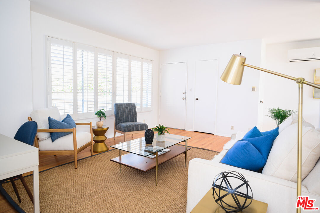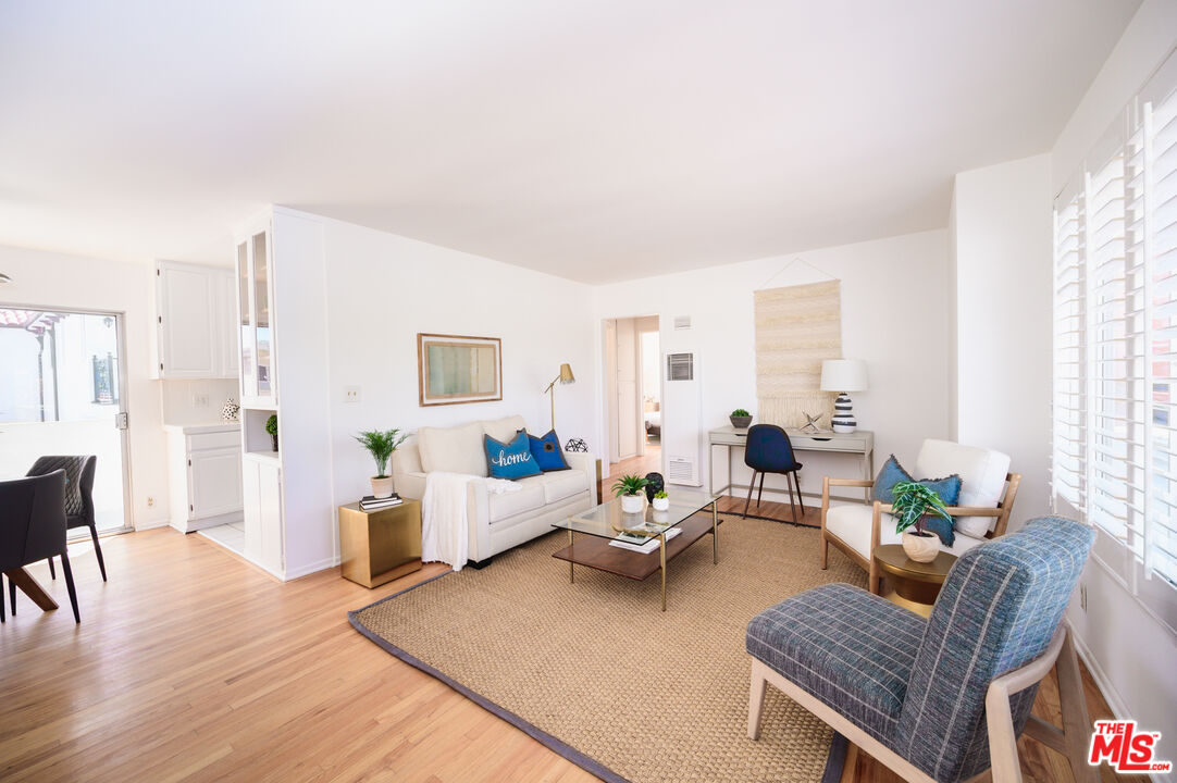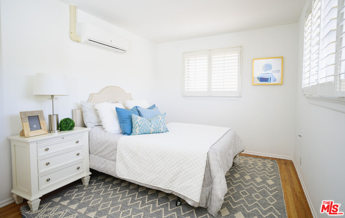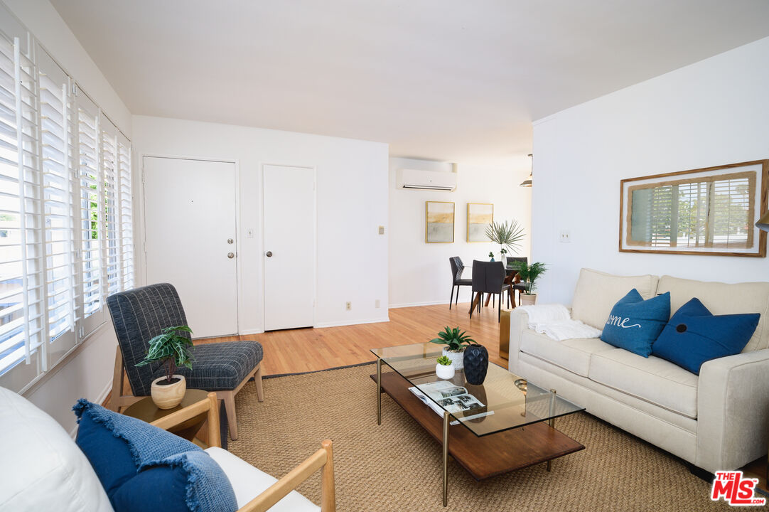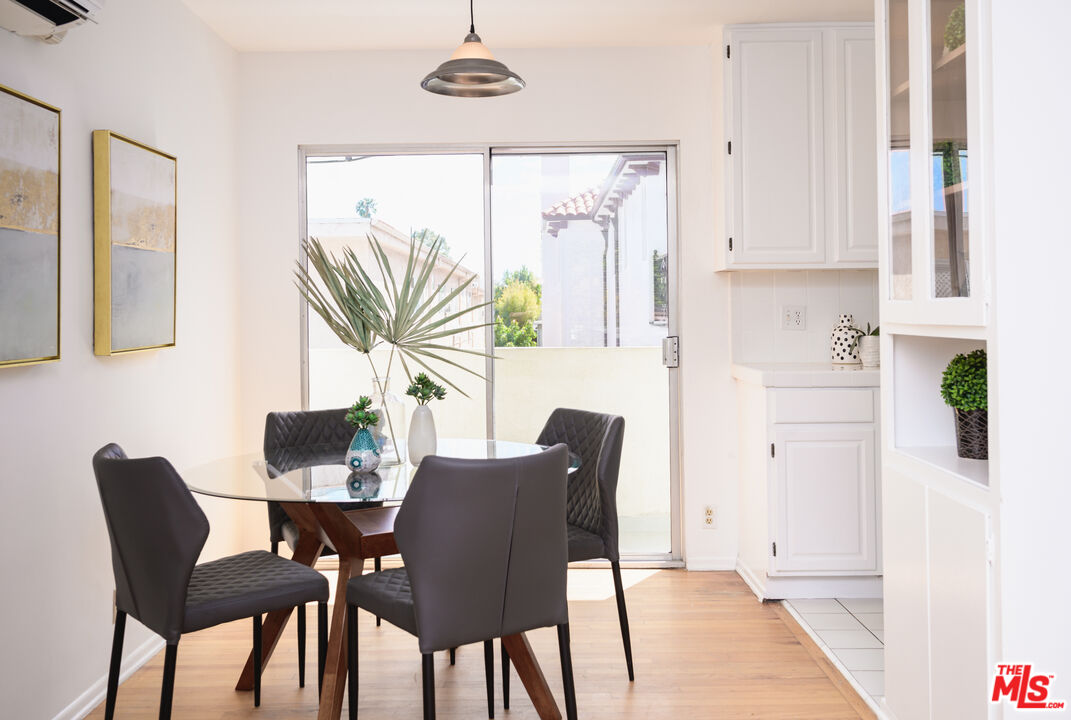 This is what you've been waiting for! Light and bright updated 2bed + 1bath condo in charming, garden style mid-century complex. Spacious 2nd floor unit has only 1 shared wall and is located at the back of the complex. Sun lit living area has hardwood floors, large picture windows with shutters, and mini split AC. Dining area opens to west facing balcony, bringing in tons of natural light. Kitchen features stainless steel appliances, plenty of cabinet space, and a pantry. Updated bathroom with subway tile, new vanity and fixtures. Both bedrooms have large cedar closets, hardwood floors, and mini split AC. Community laundry onsite, 1 car garage parking & EQ insurance. Close to the Metro, Trader Joes, Bristol Farms, Literati Cafe, Bergamont and Amandine.