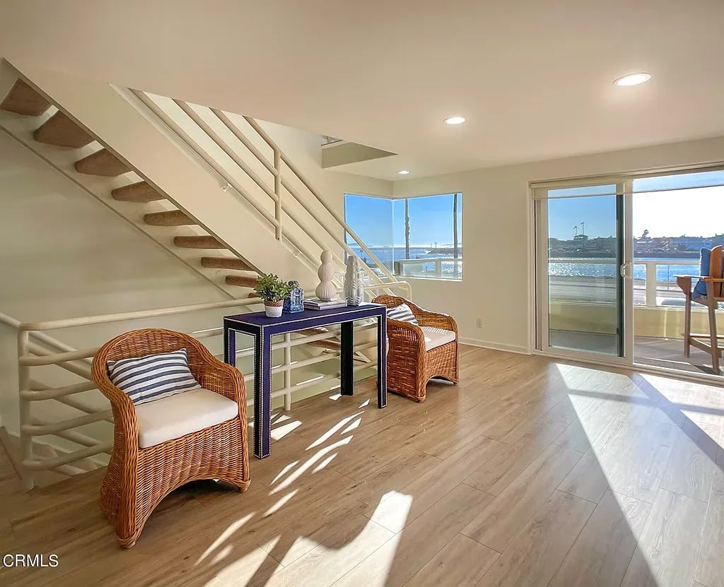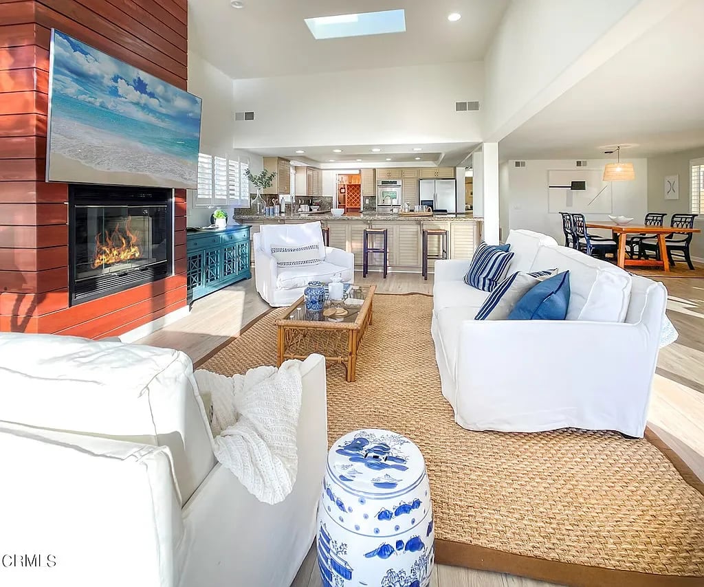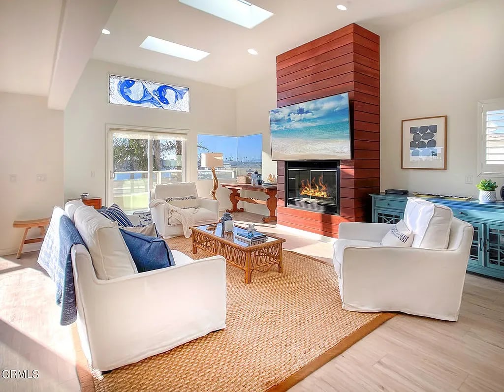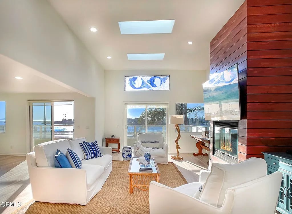 Don't miss seeing this luxurious, spacious Beach Home; it's the one you've been waiting for! The Ocean, Island and Marina Views are yours to enjoy, and they are truly spectacular! Beautifully situated and set back on a small court, you can view sweeping 180 water views up and over the breakwater to the Channel Islands as well as the Marina entrance. Silver Strand Beach is so close that your coffee will still be hot as you wander over for a morning's reflection along the water's edge. The extra-large premium lot houses this Contemporary beauty, which has everything you need and space for everyone. Multiple patios allow you to enjoy the sunsets outside, although you can't escape the beauty even while inside, as the top two levels have large sliding doors and plenty of windows. Three separate levels welcome you, along with an attached two car garage. The first level allows for extra privacy with its own entrance, kitchenette (no stove), new windows, new flooring, a fireplace, two bedrooms and a full bath. Serene and spacious, anyone would feel comfortable spending time here. The main level boasts new flooring, new paint, soaring ceilings, a fireplace centerpiece in the seating area that is just stunning, along with a large primary bedroom, enormous walk-in closet, and two baths. The spacious Chef's Kitchen is perfect for both entertaining and day to day living as the hub of this perfect main level. A Dining Room is perfectly located next to the Kitchen. Upstairs to the top level and even more privacy awaits! A darling seating area, off the balcony, just perfect for enjoying the higher views of sailboats and tall ships sailing by with yet another large Living Room Area featuring a third fireplace. A spacious Bedroom and full Bath are also located on this level. The Laundry Room is here, and it is stunning, recently remodeled and modern with loads of storage throughout. New flooring gives a modern Beach house vibe, just as the main level does. Don't hesitate - this view Beach home is move-in ready! Come visit and see for yourselves.