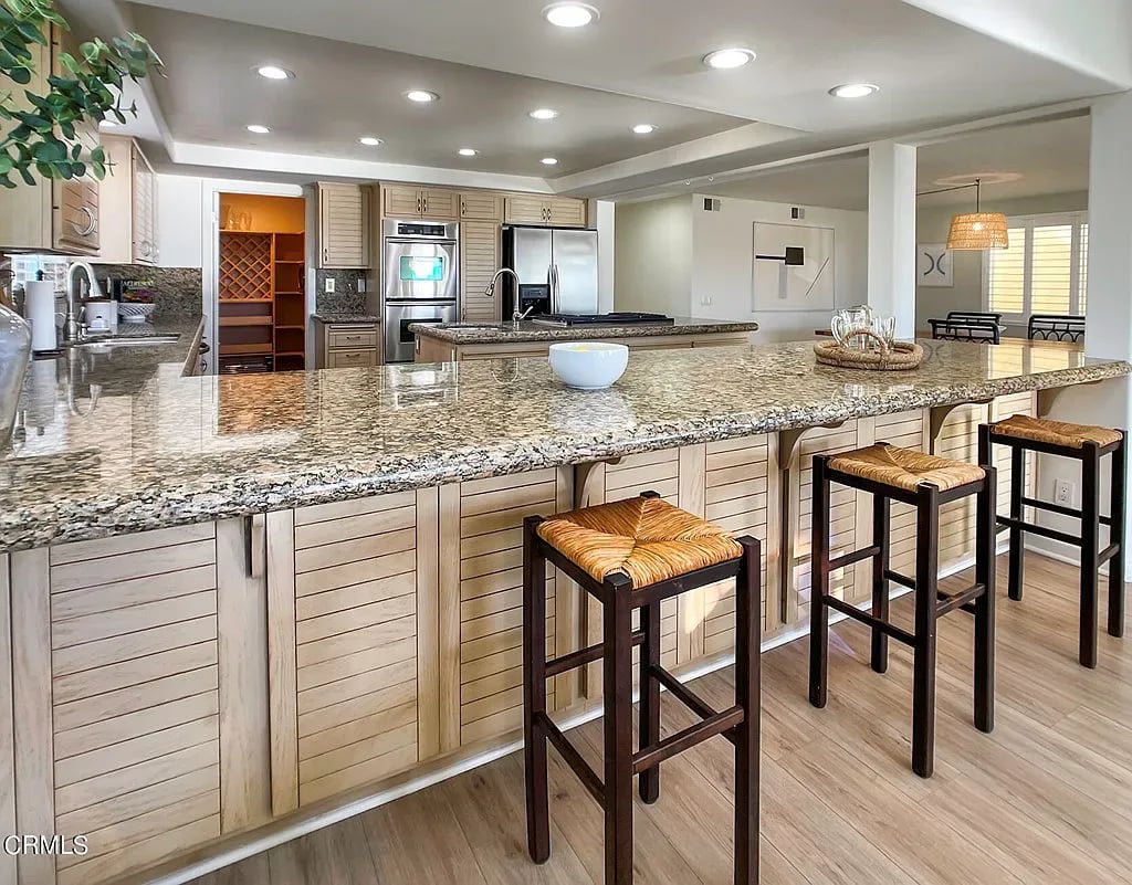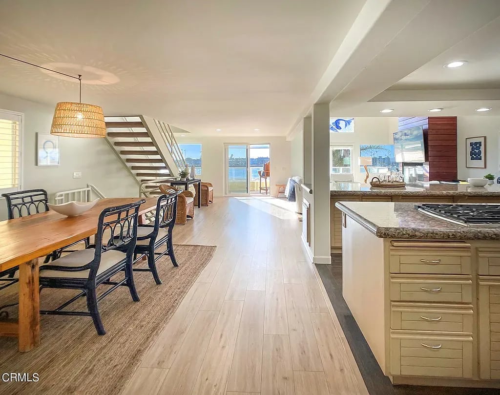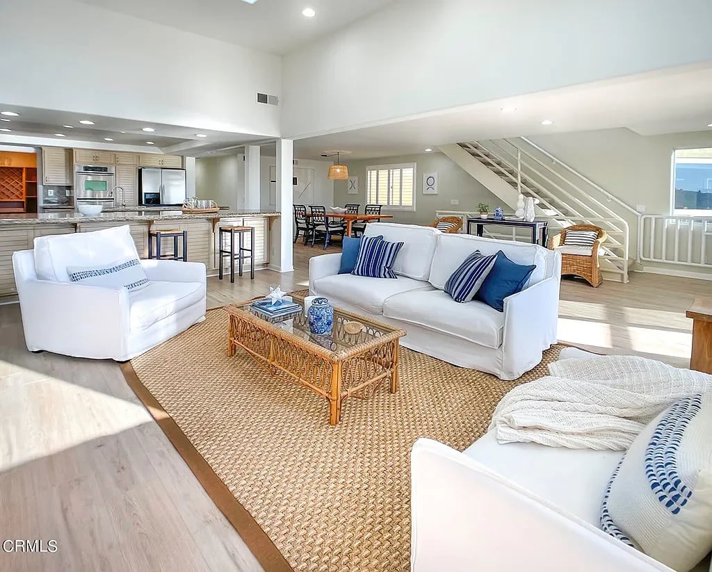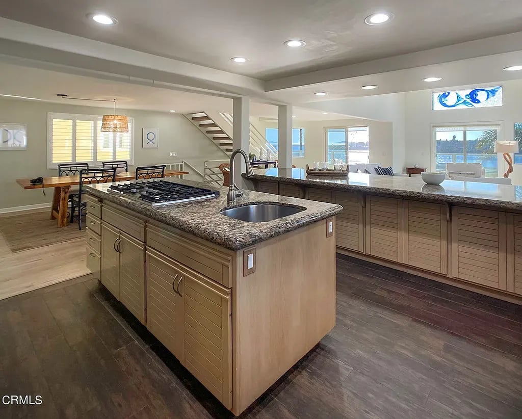 Don't miss seeing this luxurious, spacious Beach Home; it's the one you've been waiting for! The Ocean, Island and Marina Views are yours to enjoy, and they are truly spectacular! Beautifully situated and set back on a small court, you can view sweeping 180 water views up and over the breakwater to the Channel Islands as well as the Marina entrance. Silver Strand Beach is so close that your coffee will still be hot as you wander over for a morning's reflection along the water's edge. The extra-large premium lot houses this Contemporary beauty, which has everything you need and space for everyone. Multiple patios allow you to enjoy the sunsets outside, although you can't escape the beauty even while inside, as the top two levels have large sliding doors and plenty of windows. Three separate levels welcome you, along with an attached two car garage. The first level allows for extra privacy with its own entrance, kitchenette (no stove), new windows, new flooring, a fireplace, two bedrooms and a full bath. Serene and spacious, anyone would feel comfortable spending time here. The main level boasts new flooring, new paint, soaring ceilings, a fireplace centerpiece in the seating area that is just stunning, along with a large primary bedroom, enormous walk-in closet, and two baths. The spacious Chef's Kitchen is perfect for both entertaining and day to day living as the hub of this perfect main level. A Dining Room is perfectly located next to the Kitchen. Upstairs to the top level and even more privacy awaits! A darling seating area, off the balcony, just perfect for enjoying the higher views of sailboats and tall ships sailing by with yet another large Living Room Area featuring a third fireplace. A spacious Bedroom and full Bath are also located on this level. The Laundry Room is here, and it is stunning, recently remodeled and modern with loads of storage throughout. New flooring gives a modern Beach house vibe, just as the main level does. Don't hesitate - this view Beach home is move-in ready! Come visit and see for yourselves.