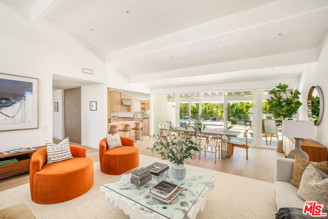 Renovated 1960s single-story Midcentury is epitome of southern California chic. Living room offers exposed beams & is anchored by stone fireplace & floor to ceiling windows. Kitchen counter tops & island w/ bar seating utilize Taj Mahal stone w/ waterfall edge & integrated sink. European white oak floors run throughout. But the real star is the saltwater pool, spa & Baja bench. Hybrid pool filtration & heater ensures you enjoy pool in no time & maintain perfect comfort. If outdoor cooking is your passion, kitchen offers bar seating for at least 8, BBQ, 2 refrigerators, pizza oven, gas burners & sink. And the front yard? Owner transformed it into a turf field, perfect for kids outdoor activities. Need more space? Detached garage is primed for ADU conversion. Compound is gated & hedged ensuring privacy. What's more, home is a Tesla lover's dream w/ 4 power walls & solar. Only minutes from premiere schools like Harvard Westlake, Campbell Hall, Carpenter Elementary plus upscale amenities like Equinox, Erewhon & Sushi Row.