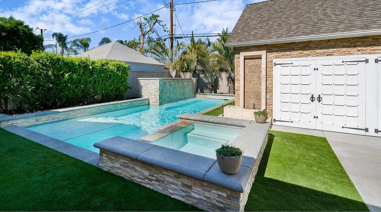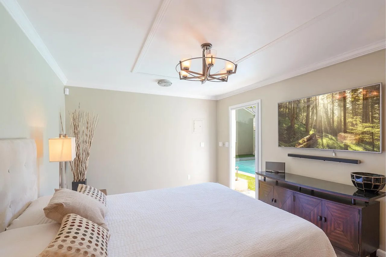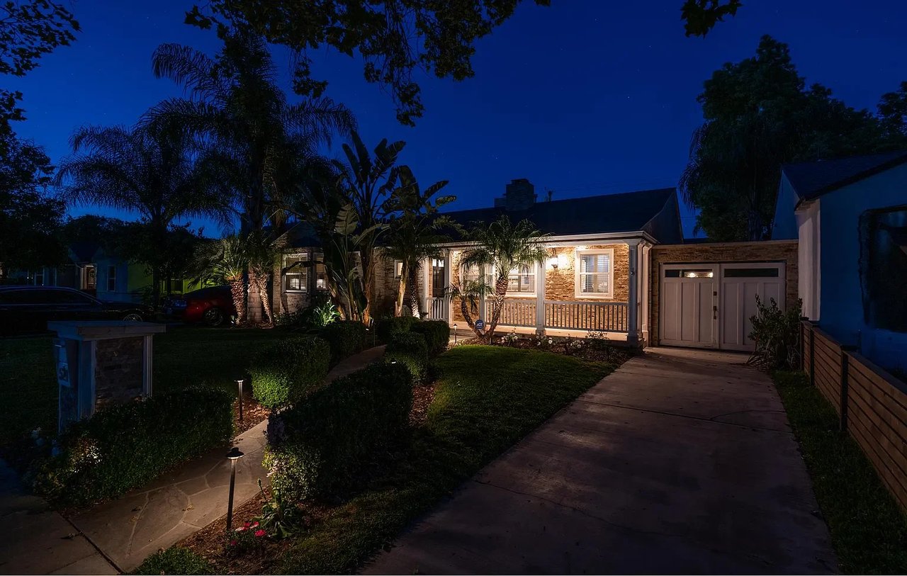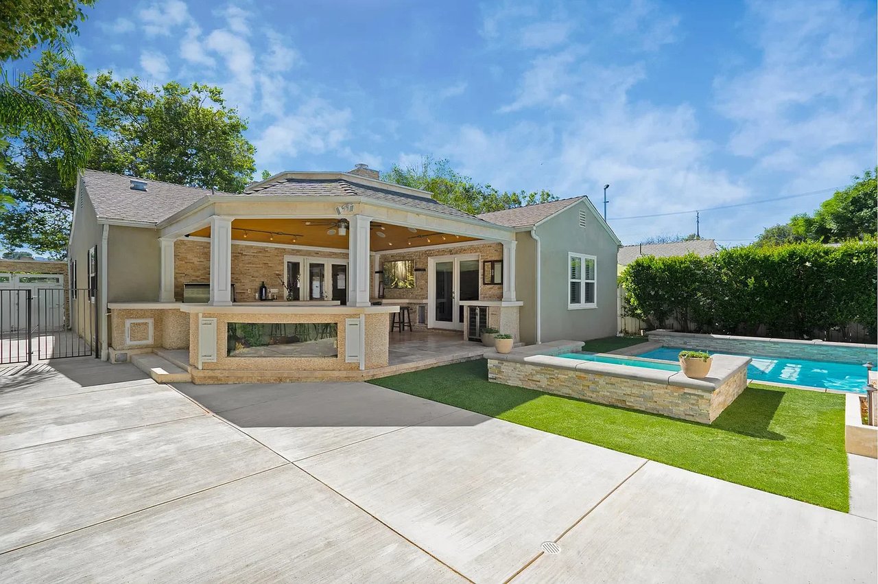 Located in Burbank's coveted "Rancho Equestrian District" within walking distance to all major studios on tree lined street, this chic pool home offers modern flare & ultra custom elements. Upon entry, be greeted by romantic fireplace and formal living/dining leading to library with custom columns & book casing. Designer kitchen features Wolf appliances, double oven, pantry and breakfast bar. Open concept living room and two spacious bd+2 ba complete main. Surrounded by green foliage, the spa/pool are complemented by Zen inspired Pool house giving outdoor living a true blend of modern architecture. Draped in slabs of soft stone the BBQ/dining are highlighted by Viking wine fridges, built in backgammon, plasma TV & Bose sound creating the ultimate experience for tranquility & relaxation at every turn. Blocks to cafe's, live music, shopping, tennis, parks, LAEC & Griffith Park. Legendary Burbank schools. Minutes to DTLA & all studios: Disney, Warner Bros, Nickelodeon, Cartoon