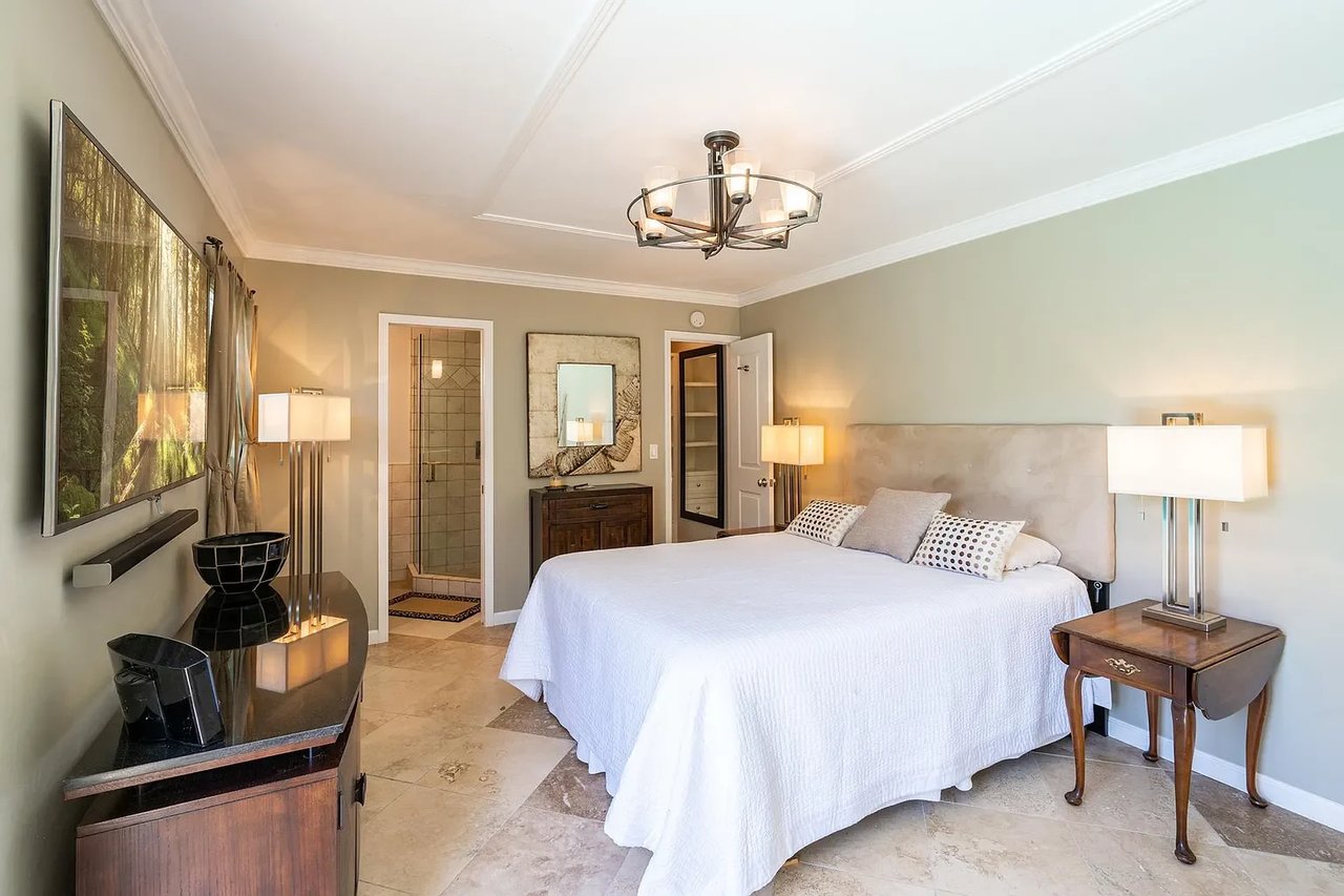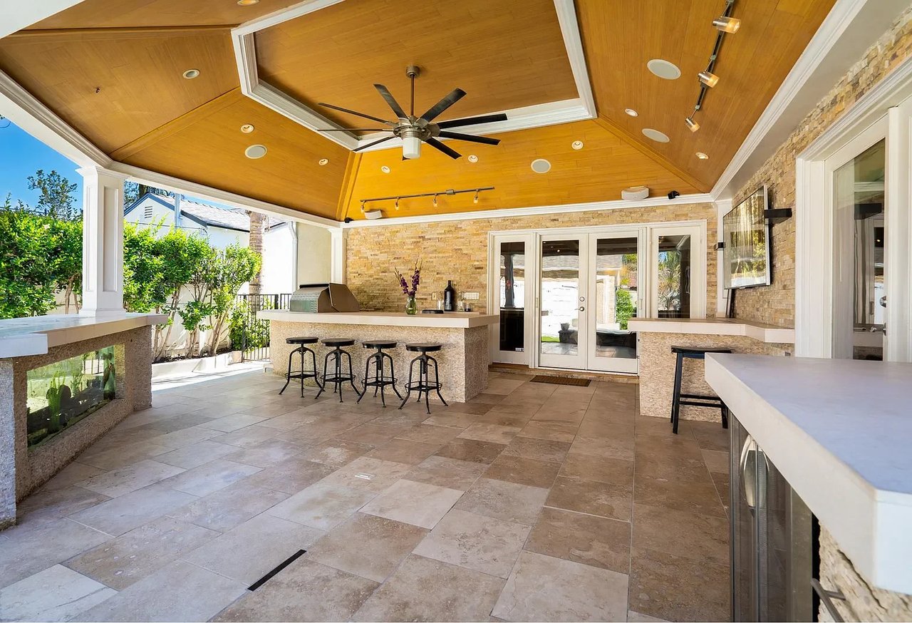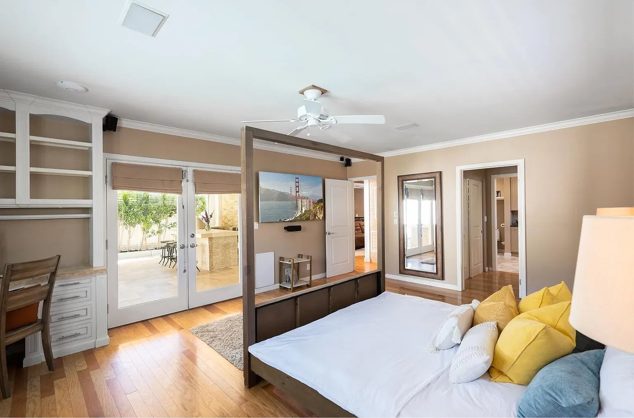 Located in Burbank's coveted "Rancho Equestrian District" within walking distance to all major studios on tree lined street, this chic pool home offers modern flare & ultra custom elements. Upon entry, be greeted by romantic fireplace and formal living/dining leading to library with custom columns & book casing. Designer kitchen features Wolf appliances, double oven, pantry and breakfast bar. Open concept living room and two spacious bd+2 ba complete main. Surrounded by green foliage, the spa/pool are complemented by Zen inspired Pool house giving outdoor living a true blend of modern architecture. Draped in slabs of soft stone the BBQ/dining are highlighted by Viking wine fridges, built in backgammon, plasma TV & Bose sound creating the ultimate experience for tranquility & relaxation at every turn. Blocks to cafe's, live music, shopping, tennis, parks, LAEC & Griffith Park. Legendary Burbank schools. Minutes to DTLA & all studios: Disney, Warner Bros, Nickelodeon, Cartoon