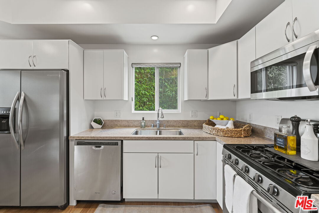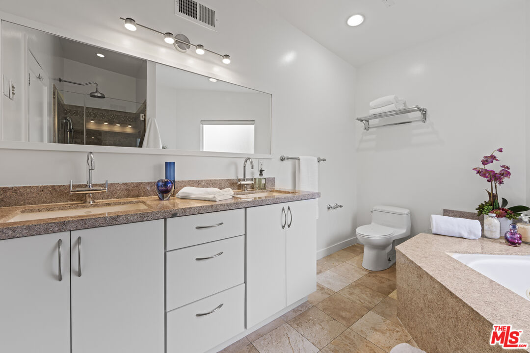 Tri-level townhome includes street level bonus room that features 3/4 bathroom & walk-in closet; only blocks from Venice Beach & offering the epitome of coastal living. Upstairs you'll find a spacious 3-bedroom, 2-bathroom, 2-story condo. Open kitchen & dining area flow into living room creating a large entertaining space. Guest bedrooms share luxe bathroom w/ separate sink & dressing area. Primary suite occupies its own level & boasts enormous walk-in closet, romantic fireplace, large windows that flood room w/ light, spa bath & separate shower. Private rooftop terrace offers peek-a-boo ocean views; an incredible spot to savor beach sunrises & sunsets. 2-car direct access garage provides convenient & secure parking; a rarity at the beach. Moments from renowned Abbot Kinney Blvd & its boho-beach chic boutiques, health & wellness shops & neighborhood eateries such as SCOPA, The Butcher's Daughter & Intelligentsia.