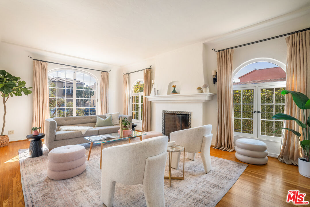 Phenomenally priced turnkey 1929 Spanish style duplex has 3 bedrooms|2 bathrooms up & down across nearly 4K sq ft. Voluminous step-down living rooms w/ coved ceilings & French windows, flooded w/ natural light, are anchored by majestic wood burning fireplaces. Gracious dining rooms open to an outdoor patio or balcony via French doors. Eat-in kitchens w/ breakfast area & Viking appliances provide culinary amenities for extravagant entertaining. Primary bathroom downstairs offers original tiles in meticulous condition while upstairs primary bathroom offers clawfoot tub from Waterworks w/ vintage detail. Stately mahogany doors & grand foyer greet owner & guest alike while original hardwood floors run throughout both units. Ample closets, including walk-ins, original casement windows, vintage restored hardware, stackable in-unit washers/dryers & 3-car detached garage complete this rare opportunity. Exterior landscape was methodically installed by Flores Artscape using low water & indigenous native plants. Only blocks from LACMA, Peterson Automotive Museum, Academy Museum of Motion Pictures, David Geffen Theater Sphere, La Brea Tar Pits, & Beverly Hills. Bottom unit will be delivered vacant. Top unit will be delivered with Tenant in place. Offer deadline is Tuesday, October 22 at 5 pm.
